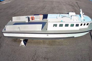 This 2018 custom 19.51 m Crew Boat is built to ABS standards with a double-welded aluminum hull and a beam of 4.93 m. Powered by twin Cummins QSK19 engines producing a combined 1,600 hp, she achieves a cruising speed of 55.6 km/h and a maximum speed of 63 km/h, with a draft of 1.52 m. Classified as a Motor Yacht, she is USCG COI certified for 49 POB + 2 crew and equipped with twin Northern Lights, 20 kW generators, hydraulic steering, and advanced navigation systems.