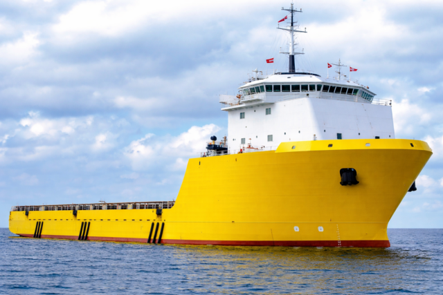 Displacement is recorded at 5,640 lt, indicating a structurally substantial hull designed to accommodate heavy variable loads, offshore equipment spreads, and potential modular mission systems depending on final configuration. This displacement figure aligns with a platform intended for demanding offshore environments where load flexibility and structural strength are key operational requirements.
